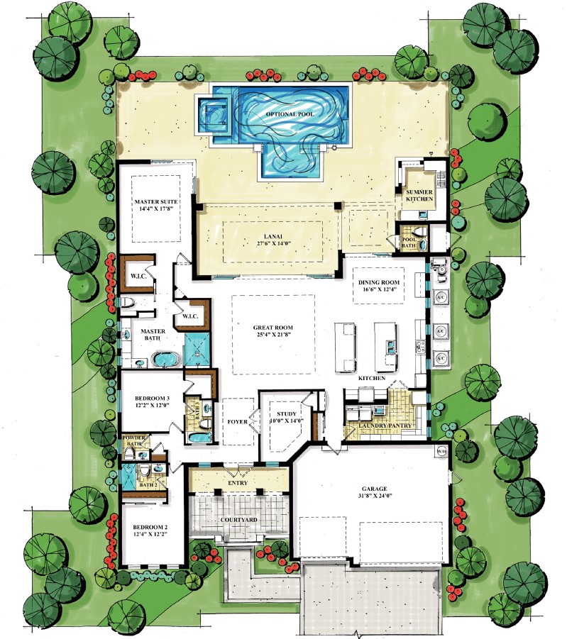 - Description: The LA Palma II Estate plan is the luxury home you have been searching for. This plan boasts over 2,918 square feet of sophisticated living and entertaining spaces. The gourmet kitchen with Cambria countertops and two full size island units coupled with a large walk-in pantry is a chef's delight. The expansive great room with soaring ceilings and floor-to-ceiling sliders showcases the unbeatable views and with a large master suite, and two junior suites, this home is comfortable for large families or to host guests.