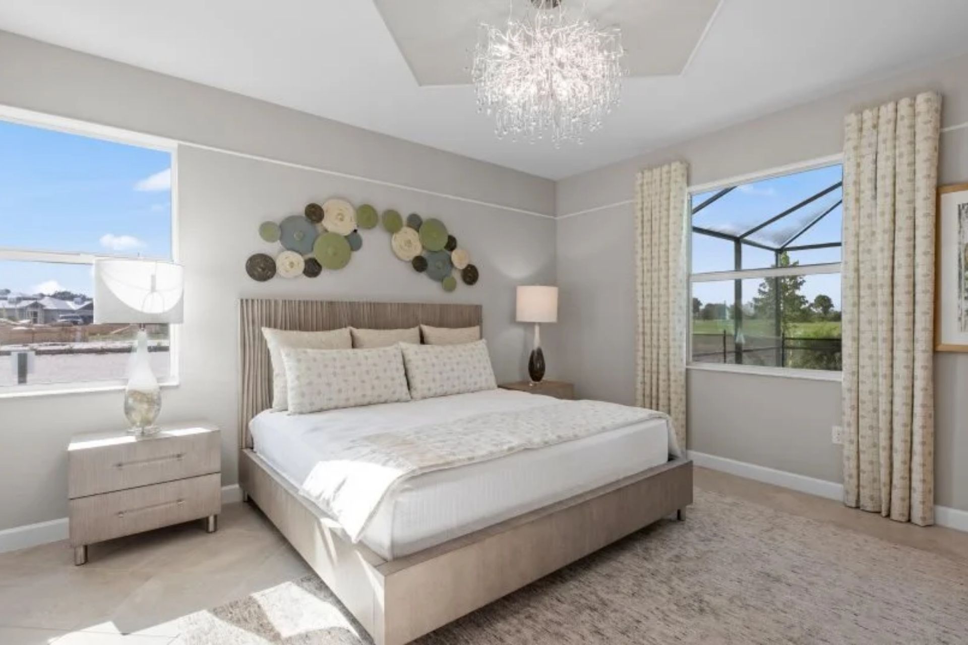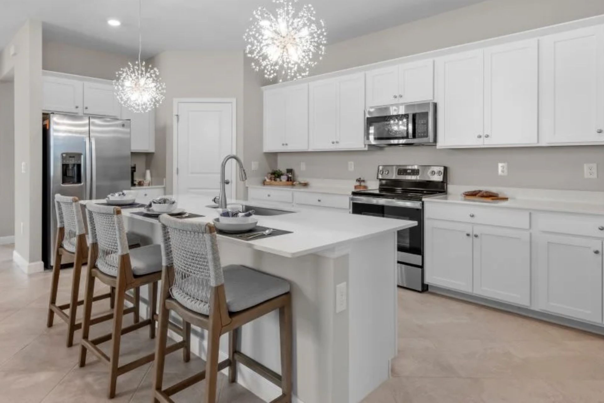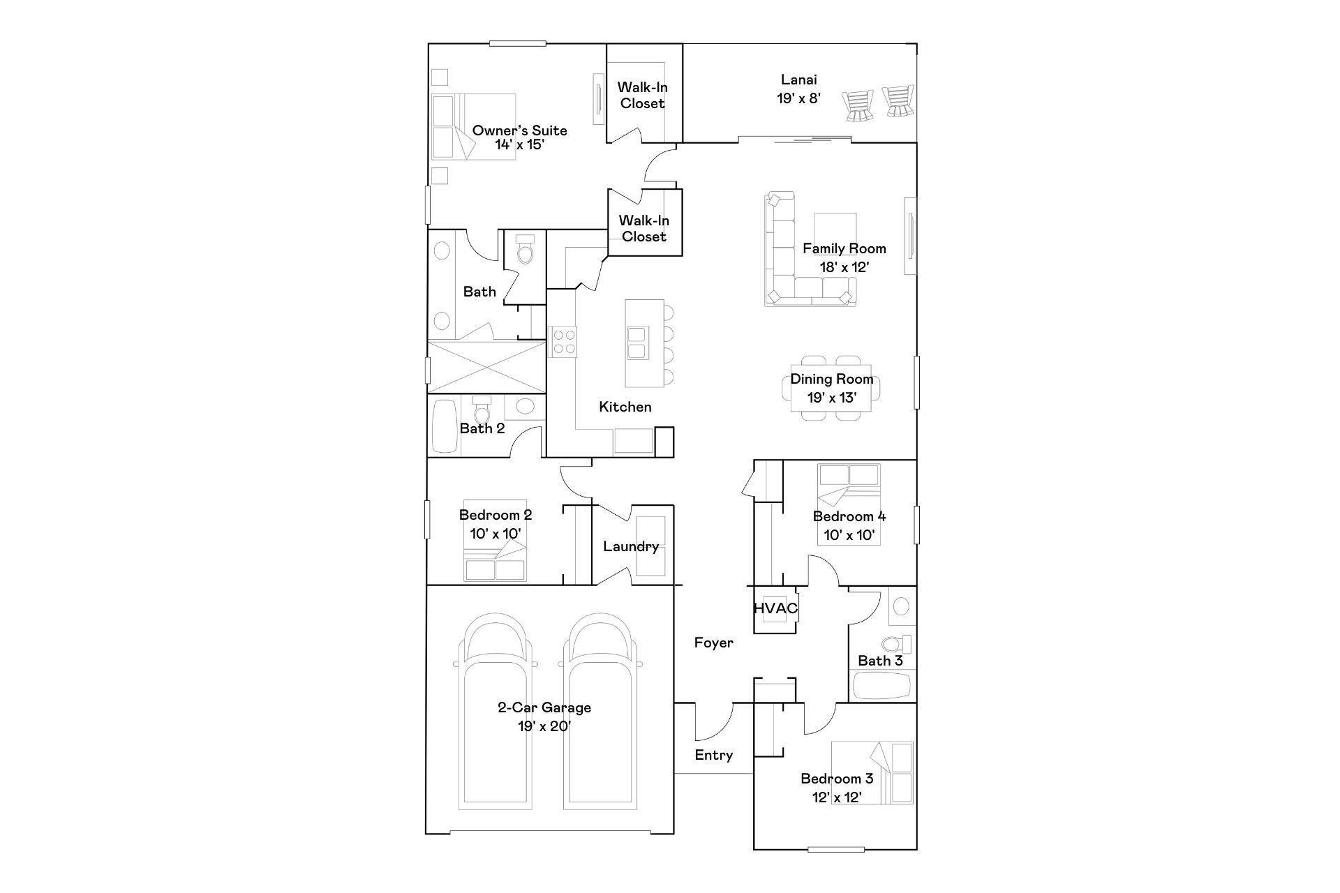 - Description: This single-story home offers versatile living, with an open design among the dining room, kitchen and family room, which lead to a covered lanai for outdoor experiences. Surrounding the space are all four bedrooms, including the lavish owner’s suite with an adjoining bathroom and a large walk-in closet. A versatile two-car garage completes the home. Experience Brightwater Lagoon, where life feels like an endless day at the beach. This stunning master-planned community offers six acres of crystal clear water surrounded by sand, swim-up bars and sunset views.